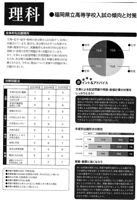 福岡市西区学習塾マイベストです。 今回は、高校入試情報の7回目:公立高校入試理科の対策です。