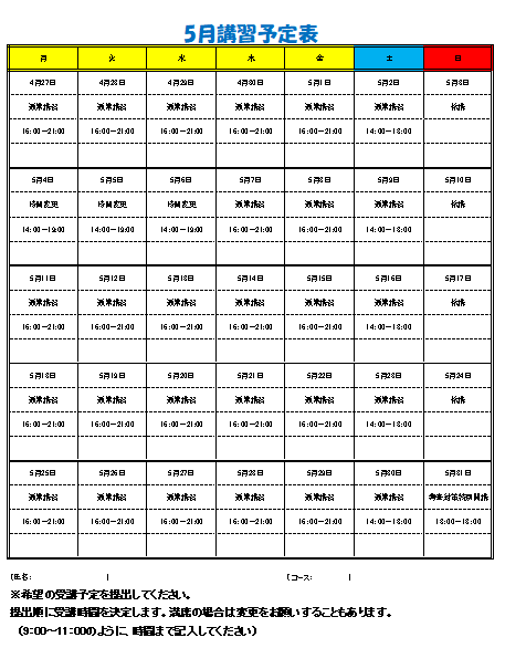 5月度予定表